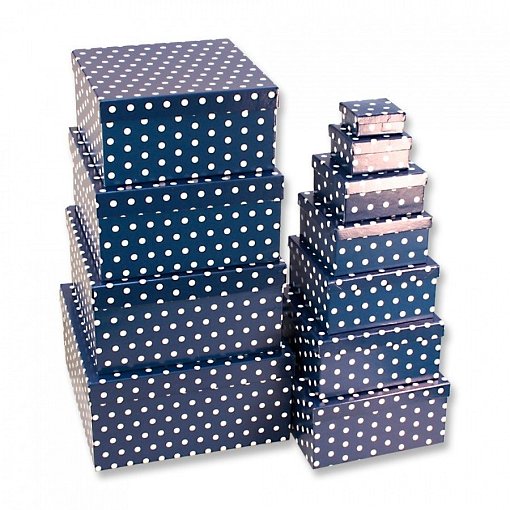 Набор коробок № 71 Квадрат 11 шт. Горох синий. 25,5см*25,5см*13см