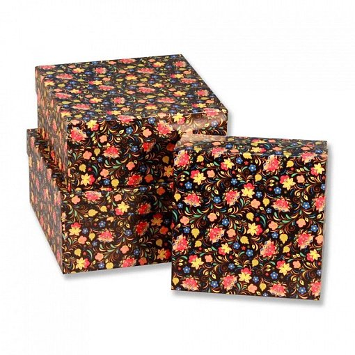 Набор коробок № 75 Квадрат Хохлома 3шт. 19,5см*19,5см*11см