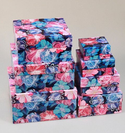 Набор коробок Квадрат. Цветы 3 7шт" 20см*20см*10см