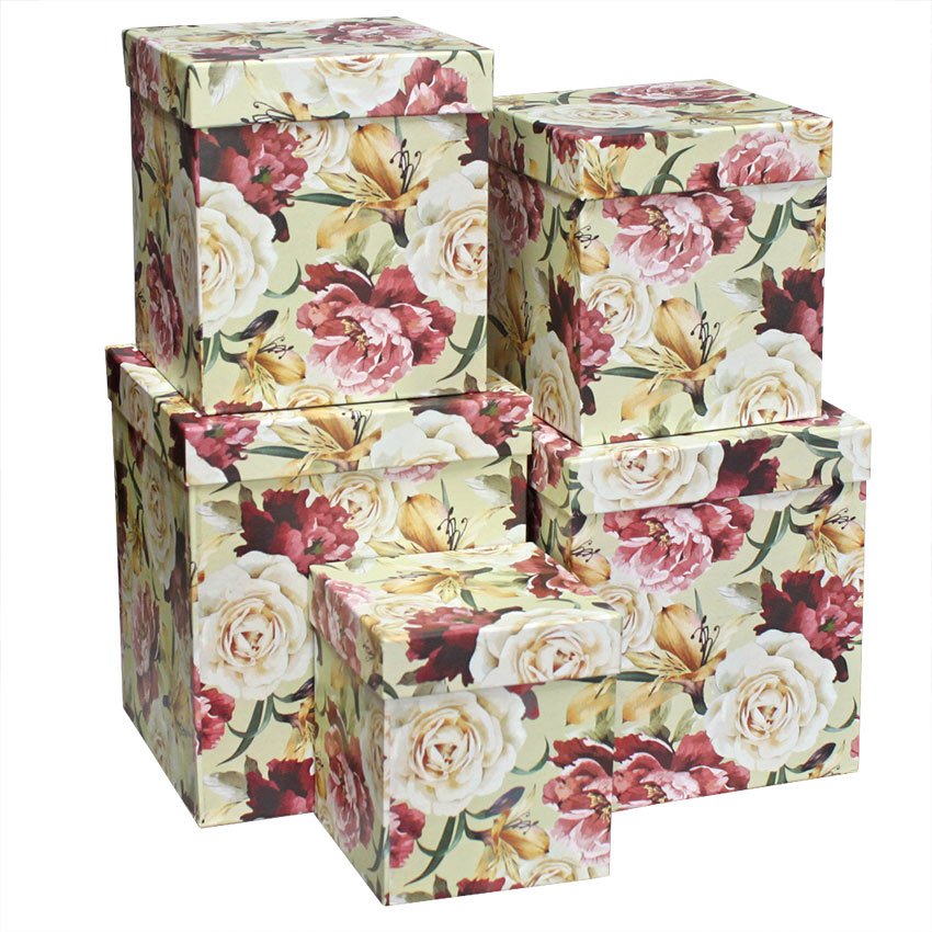 Набор коробок Квадрат. Пионы 5шт" 18,5см*18,5см*22см