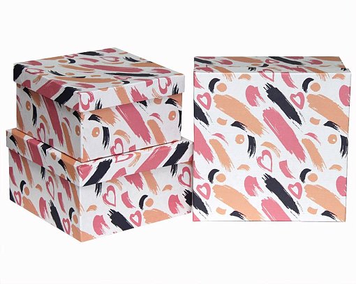 Набор коробок № 75 Квадрат Мазки Сердца 3шт. 19.5см*19.5см*11см