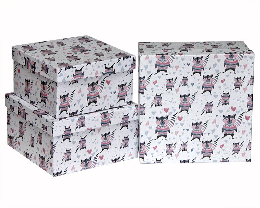 Набор коробок № 75 Квадрат Еноты 3шт.19.5см*19.5см*11см