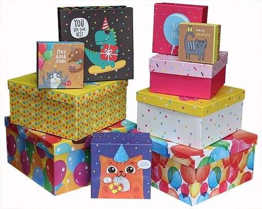 Набор коробок № 71 Квадрат 10 шт. Поздравления 28,3*28,3*15см 4021358