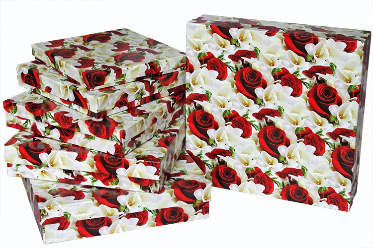 Набор коробок Квадрат. Цветы ассорти 6шт" 30см*30см*7,5см