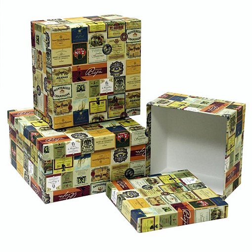 Набор коробок № 75 Квадрат Винные этикетки 3шт" 19,5см*19,5см*11см