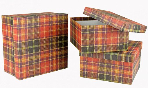 Набор коробок № 75 Квадрат КРАФТ Шотландка красная 3шт" 19,5см*19,5см*11см