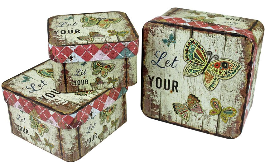 Коробка/набор из 3 шт. КВАДРАТ "Бабочки" 17*17*9.5см 36 т.м.