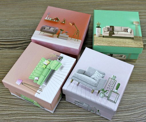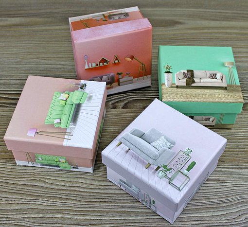 Коробка КВАДРАТ " Интерьер ассорти" 9,5*9,5*5,5 12шт./уп 216 т.м.