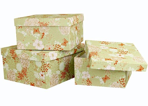 Набор коробок Крафт № 75 ЛЮКС Цветы на зелёном Квадрат 3шт. 19,5см*19,5см*11см