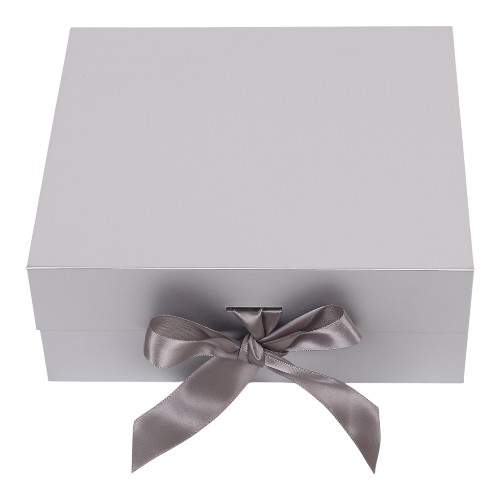 Коробка подарочная Z225. Прямоугольник 20х18,2х8см. "Серебро с бантом". 72 т.м.