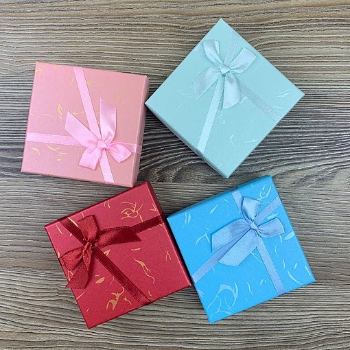 Коробка ювелир. с бантом ассорти 9*9*3см 12шт/уп 720 т.м.