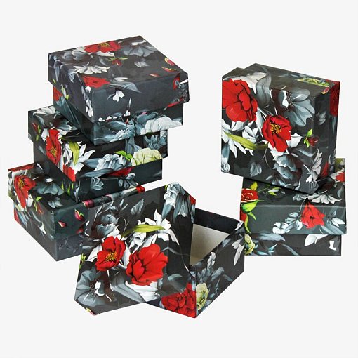 Набор коробок "Квадрат " Цветы на черном" 8*8*4,5 6шт