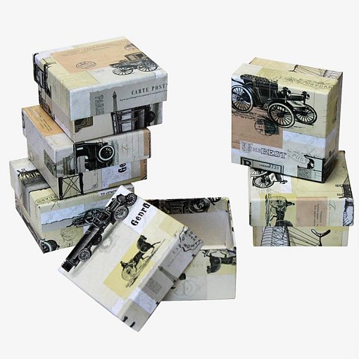 Набор коробок "Квадрат "Паровозы ретро " 8*8*4,5 6шт
