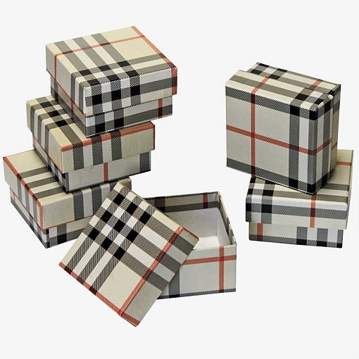 Набор коробок "Квадрат "Шотландка беж. " 8*8*4,5 6шт