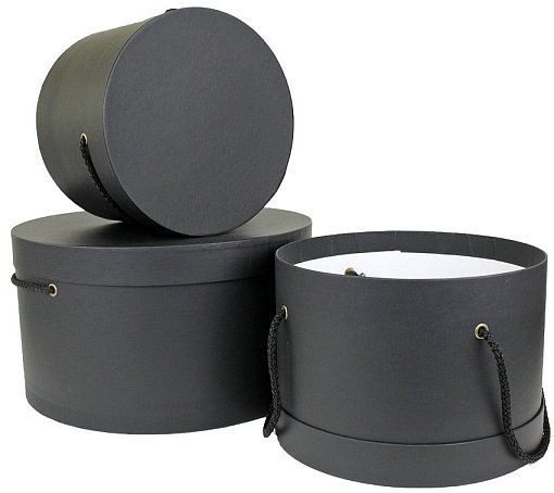 Набор коробок №11 Чёрный круглые низкие с люверсами 3 шт 30*30*17