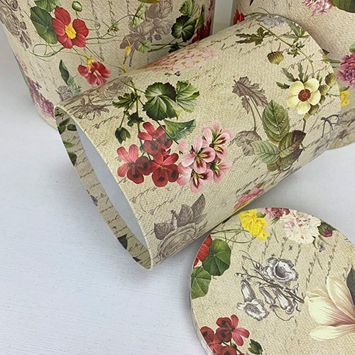Набор коробок "Цилиндр" Цветы Ретро 23*25 4 шт