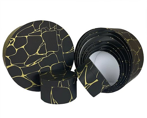 Коробка/набор из 10 шт. КРУГ "Чёрный Мрамор" 35*17,3 4 т.м.