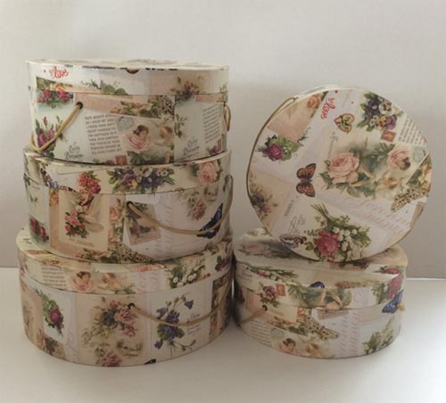 Набор коробок 5 шт."Круг низкий" с вер.ручками d=31 см.h=12,5 см.