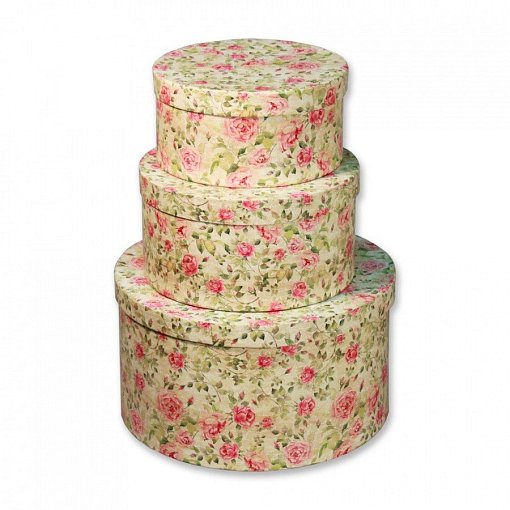 Набор коробок круглые низкие Цветы 3 шт 30*30*15