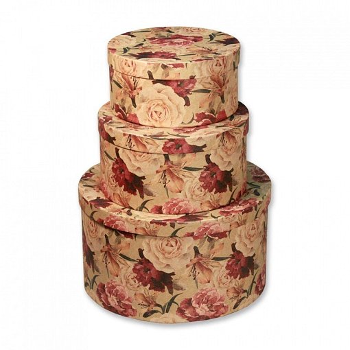 Набор коробок. круглые низкие Пионы Крафт 3 шт 30*30*15