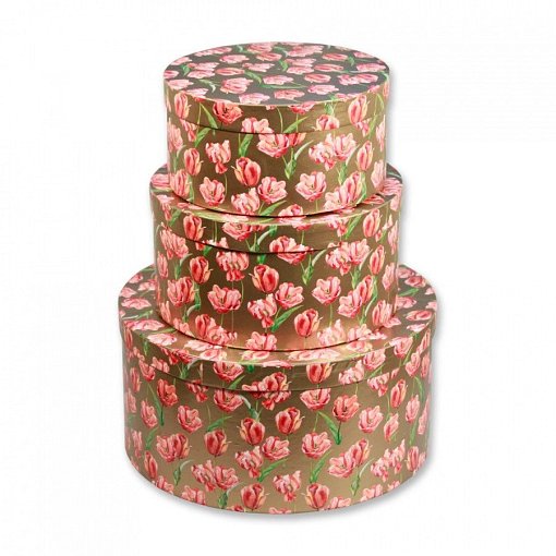 Набор коробок Тюльпаны Золотые кругл. низкие 3 шт 30*30*15