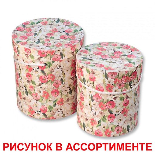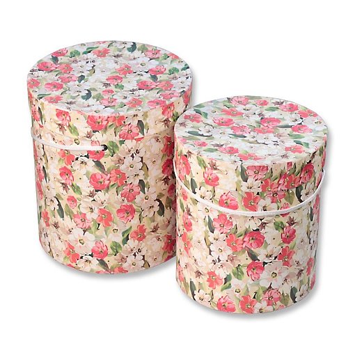 Комплект шляпных коробок (обклейка бумага дизайнерская с рисунком) 2шт с люверсами и лентой.