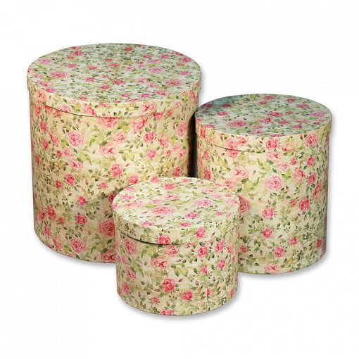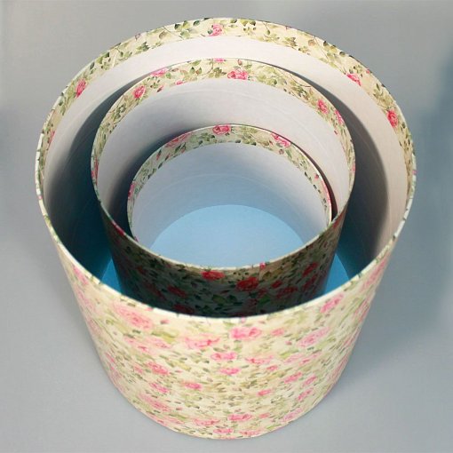 Набор коробок круглые высокие Цветы 3 шт 30*30*30