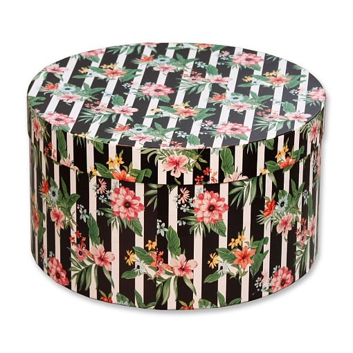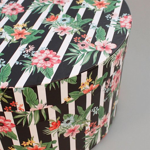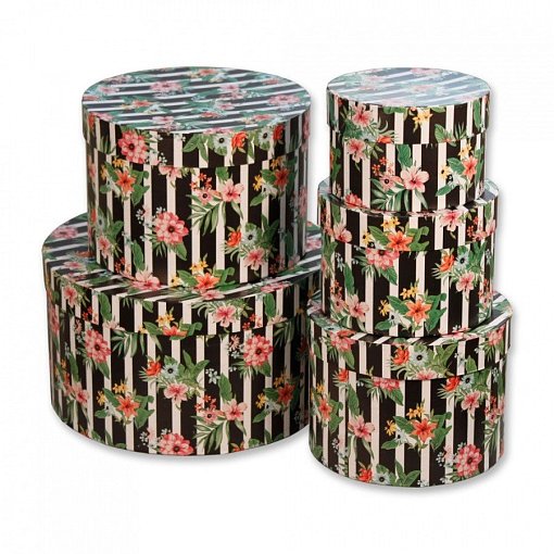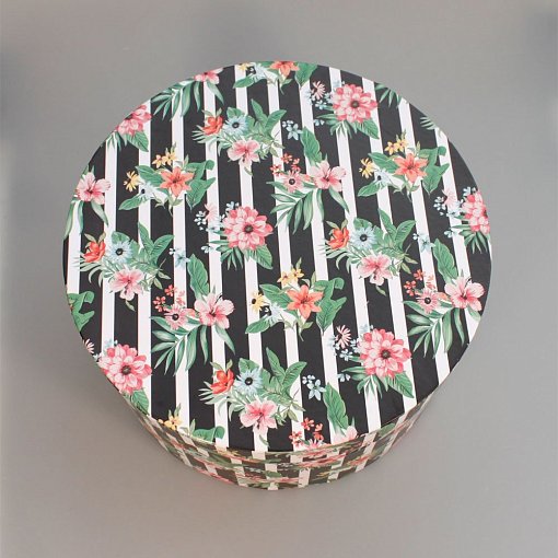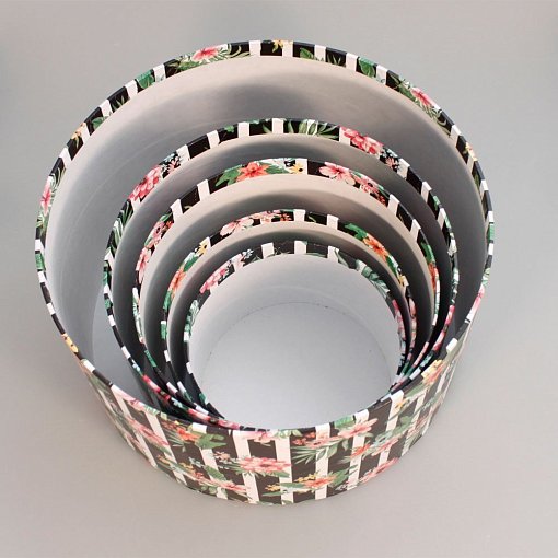 Набор коробок №85 "Цилиндр" 5 шт Цветы в полоску 30*17см