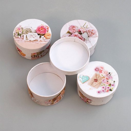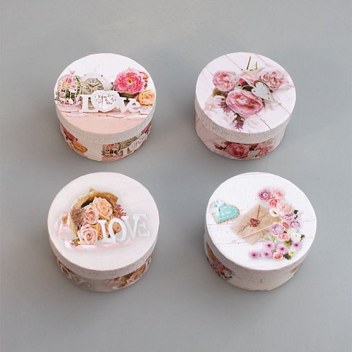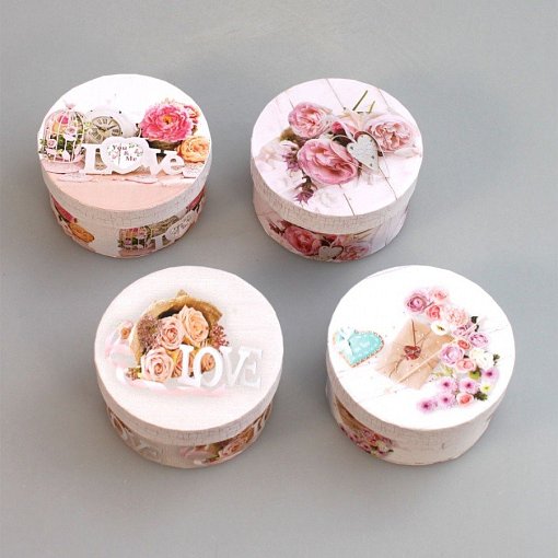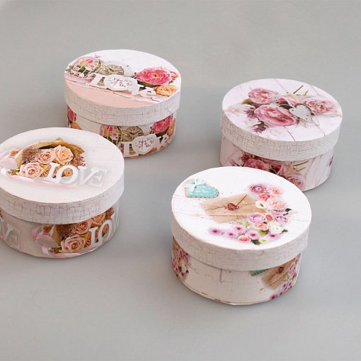 В упаковке 12 коробок одного размера 4 различных рисунков.