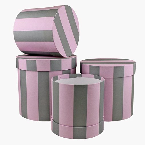 Набор коробок №16 "Цилиндр" 4в1 Полосы сер/роз 20*20см