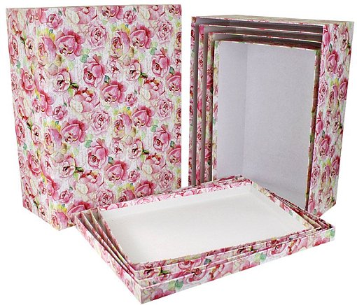 Набор коробок № 3 Прямоугольные Розы Розовые 5 шт" 45см*35см*14см