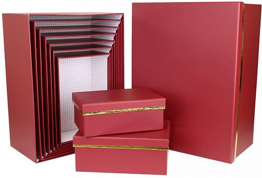 Коробка/набор из 10 шт.Прямоугольник "Красный с золот. полосой" 37*29*16 4 т.м.