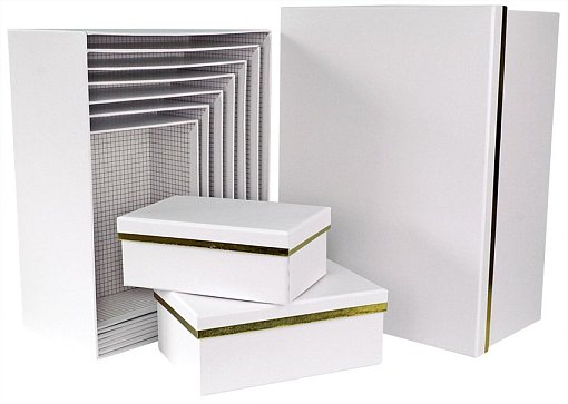 Коробка/набор из 10 шт.Прямоугольник "Белый с золот. полосой" 37*29*16 4 т.м.