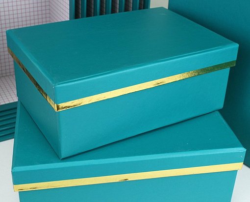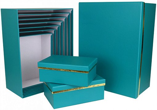 Коробка/набор из 10 шт.Прямоугольник "Бирюза с золот. полосой" 37*29*16 4 т.м.