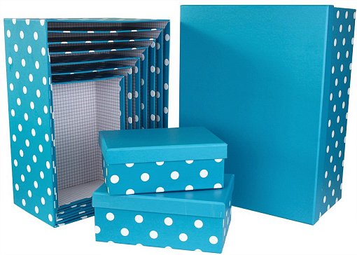 Коробка/набор из 10 шт.Прямоугольник "Горох голубой" 37*29*16 4 т.м.