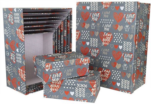 Коробка/набор из 10 шт.Прямоугольник "Сердца" 37*29*16 4 т.м.