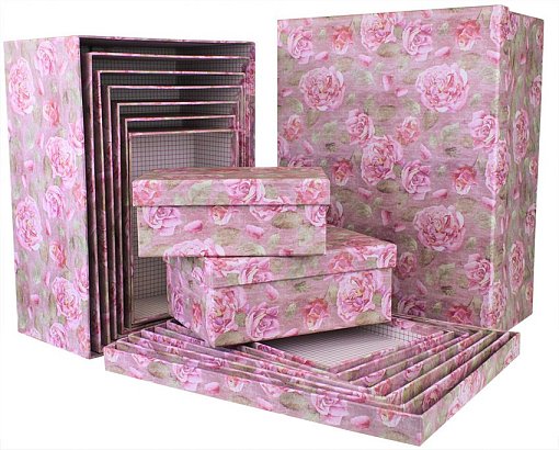 Коробка/набор из 10 шт.Прямоугольник "Пионы" 37*29*16 4 т.м.