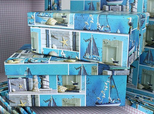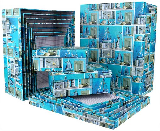 Коробка/набор из 10 шт.Прямоугольник "Морской" 37*29*16 4 т.м.