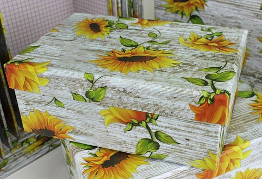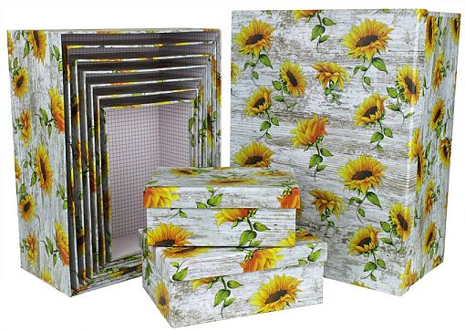 Коробка/набор из 10 шт.Прямоугольник "Подсолнухи" 37*29*16 4 т.м.