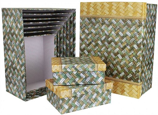 Коробка/набор из 10 шт.Прямоугольник "Плетенье 1" 37*29*16 4 т.м.