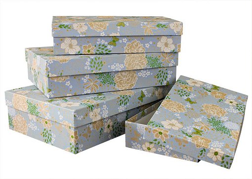 Набор коробок Крафт № 7 ЛЮКС Цветы на синем Прямоугольные 4шт" 30см*20см*8см