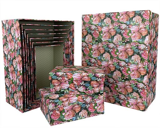 Коробка/набор из 10 шт. Прямоугольник "ПИОНЫ" 37*29*16 4 т.м.