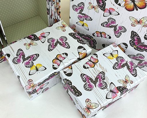 Коробка/набор из 10 шт. Прямоугольник "Бабочки" 37*29*16 4 т.м.