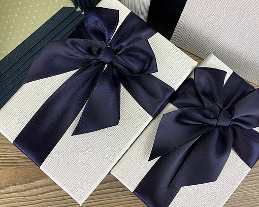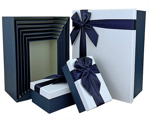 Коробка/набор из 10 шт. Прямоугольник "Тёмносиний с бантом" 34*26*15,3 6 т.м.