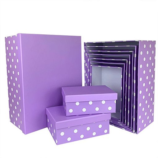 Коробка/набор из 10 шт.Прямоугольник "Горох лиловый" 37*29*16 4 т.м.