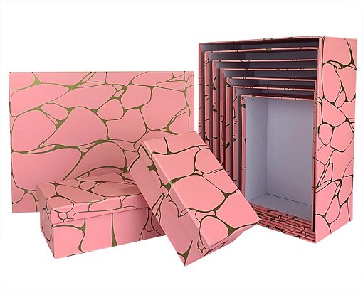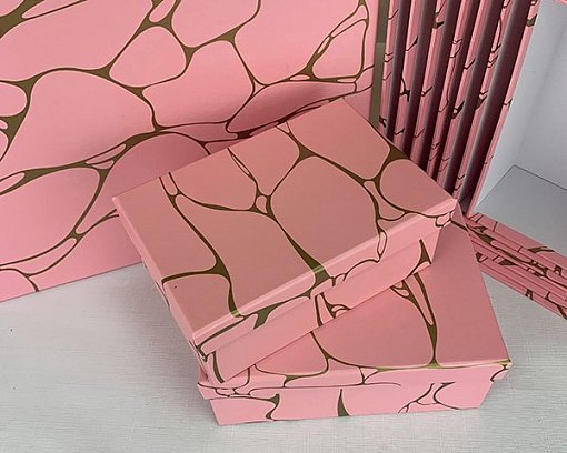 Коробка/набор из 10 шт.Прямоугольник "Розовый Мрамор" 37*29*16 4 т.м.