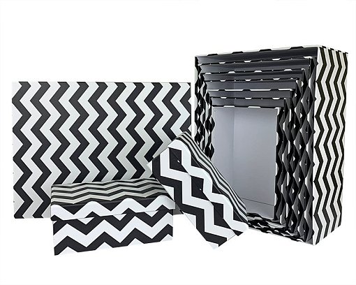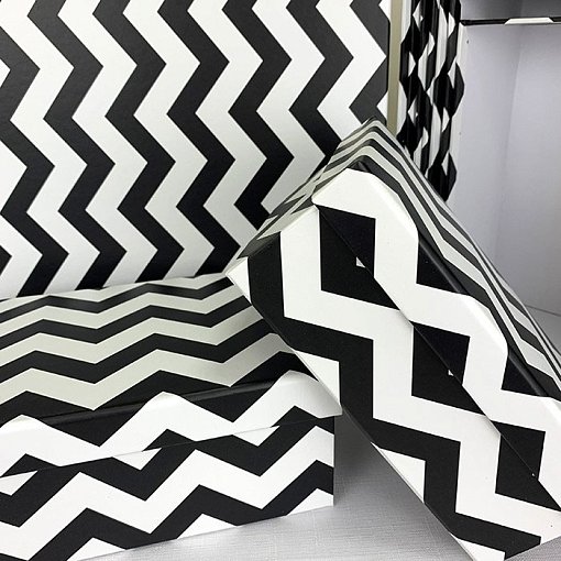 Коробка/набор из 10 шт.Прямоугольник "Чёрные зигзаги" 37*29*16 4 т.м.