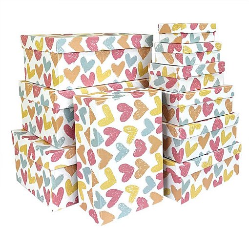 Набор коробок № 10 Прямоугольные глубокие Сердца Меловые 32,5х20х12,5см