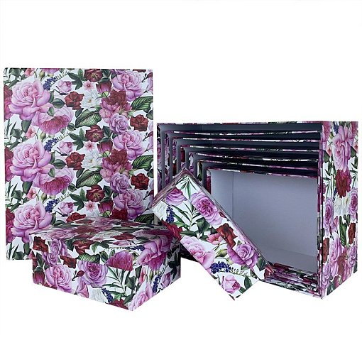 Коробка/набор из 10 шт.Прямоугольник "Цветы" 37*29*16 4 т.м.