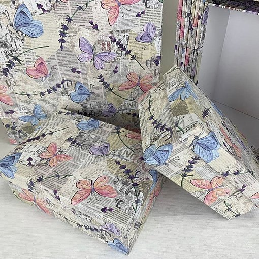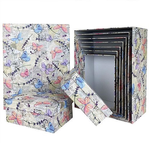 Коробка/набор из 10 шт.Прямоугольник "Бабочки" 37*29*16 4 т.м.